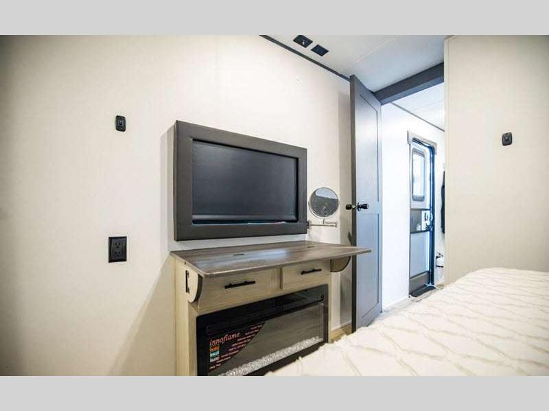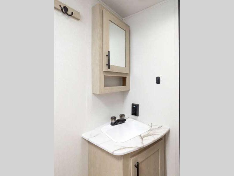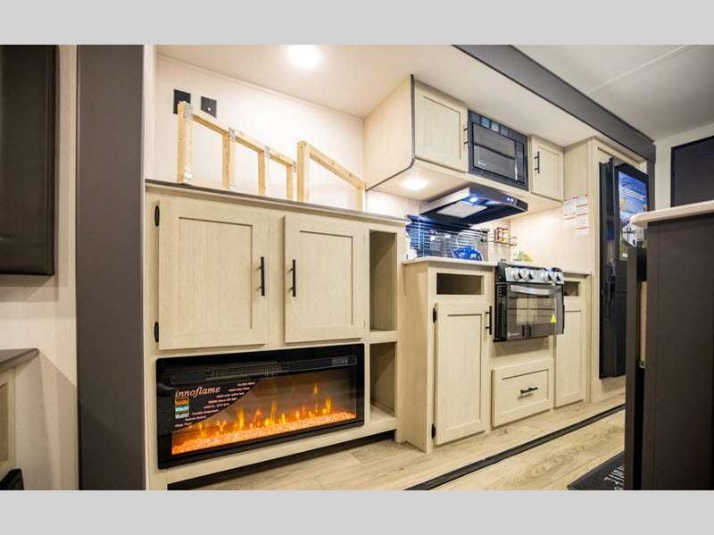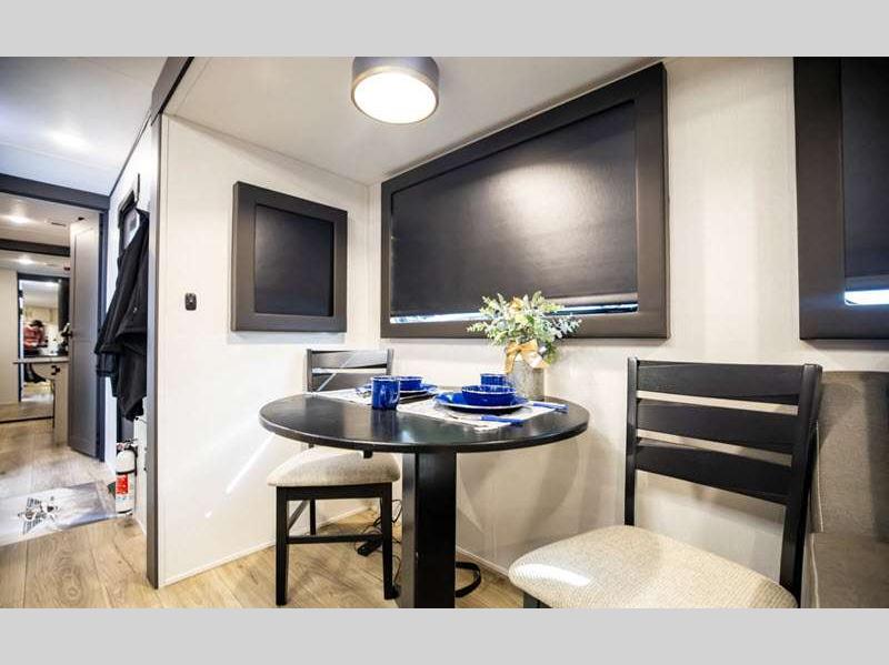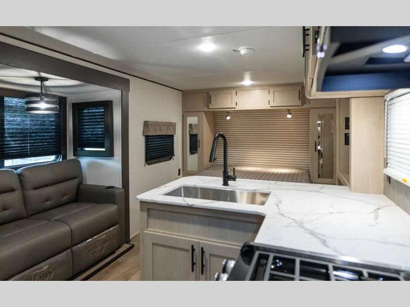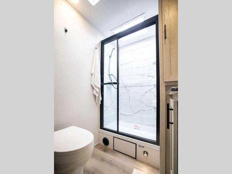 Each is constructed of an aluminum exterior skin, 2x2 wood studs 16" on center or less, fiberglass insulation in all walls, floor and roof, plus Tufflex PVC roof material. The Camping with Ease Package comes a tankless water heater, a 200W solar panel, a Bluetooth portable speaker to listen to your favorite tunes. The Step-Up Package is also accommodating with its power tongue jack, flip-up storage rack, enclosed underbelly, and more!